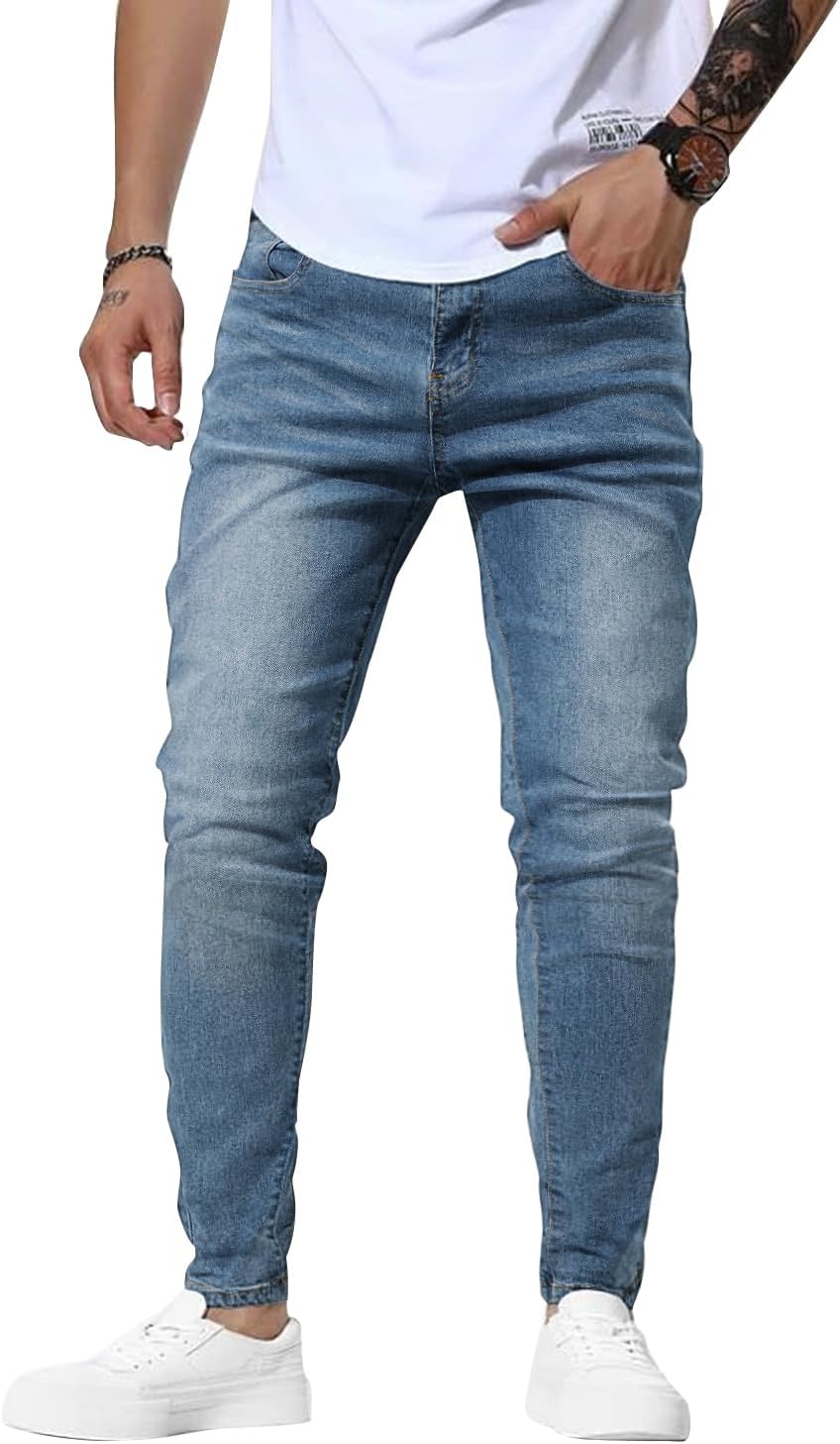 Woenzaia Mens Jeans Slim Fit Skinny Denim Stretch Tapered Jean Pants