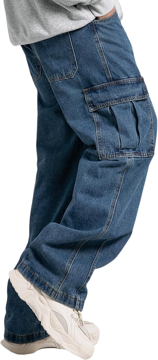 Mens Baggy Jeans for Men Women Y2k Skater Vintage Plain Pants Multiple Pockets Casual Wide Leg Loose Fit Cargo Denim Jeans