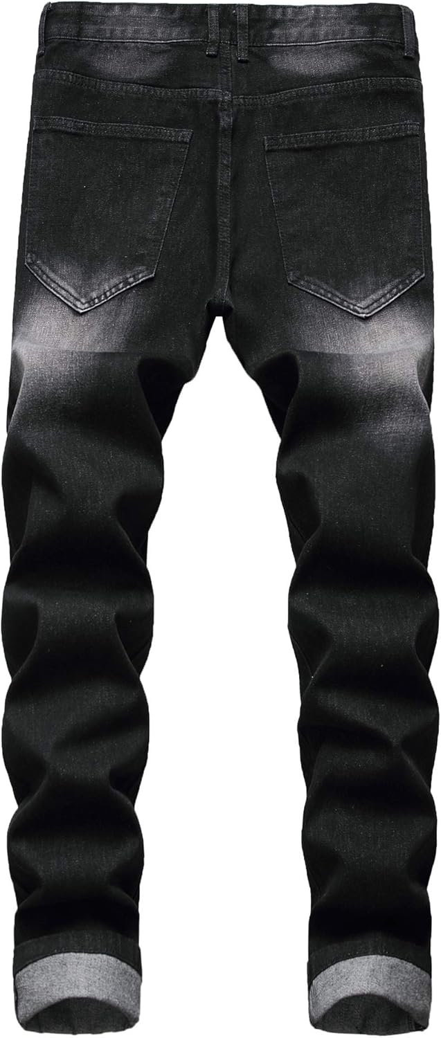 Men’s Slim-fit Stretch Denim Jeans Featuring a Ripped Stretch Regular Pants