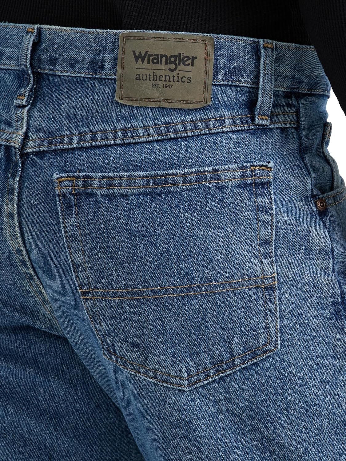 The Wrangler Authentics collection delivers laid-back style for the man on the go. Performance-level comfort is built into our classic button-downs and blue jeans for an outfit that feels as good as it looks. Wrangler Authentics jeans are constructed with 5-pocket styling, made from heavyweight 100% cotton denim and feature a comfortable waist with deep front pockets. Available with Advanced Comfort technology that helps your jeans move with you for all day comfort. Pair with your favorite Wrangler Authentics shirt for a night out or casual weekend.